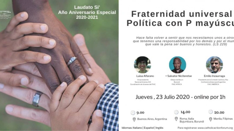 "Fraternidad universal y Política con P mayúscula", webinar dentro del Año Laudato Si'