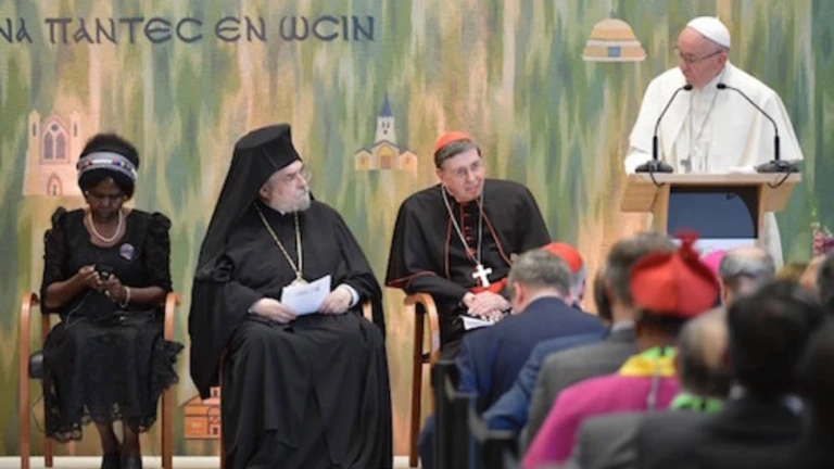 Me es grato encontrarme con vosotros y os agradezco vuestra amable acogida. En particular, doy las gracias al Secretario General, Reverendo Dr. Olav Fykse Tveit, y a la Moderadora, Dra. Agnes Abuom, por sus palabras y por haberme invitado con ocasión del 70º aniversario de la institución del Consejo Ecuménico de las Iglesias.
