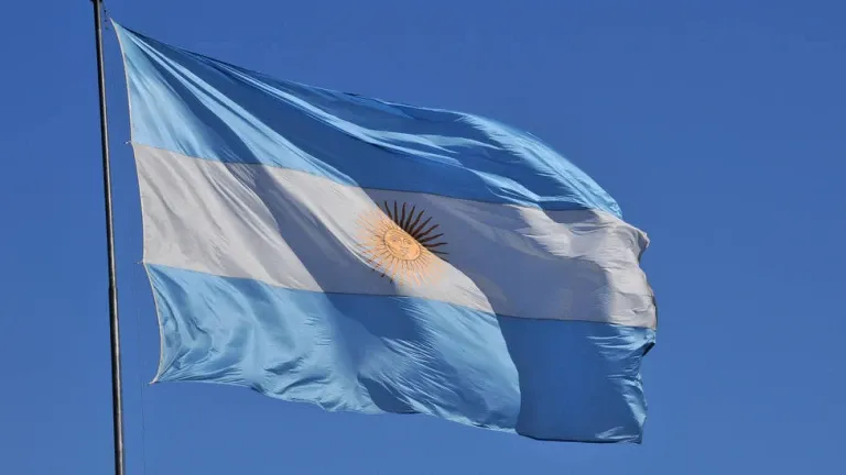 Argentina flag in blue sky, Buenos Aires, Argentina
