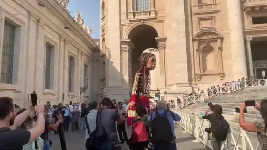 La marioneta Amal, embajadora de los niños refugiados, llega a la Plaza San Pedro: "Necesitan acogida"