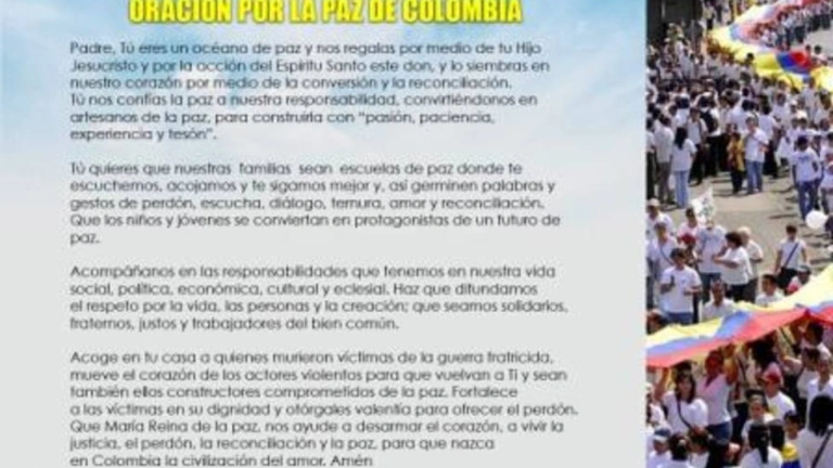 Según se señala, los prelados invitan a todos los colombianos a rezar esta "plegaria al Señor, dueño del don de la paz" y los exhortan a seguir trabajando en la construcción de una cultura de la reconciliación y el perdón.