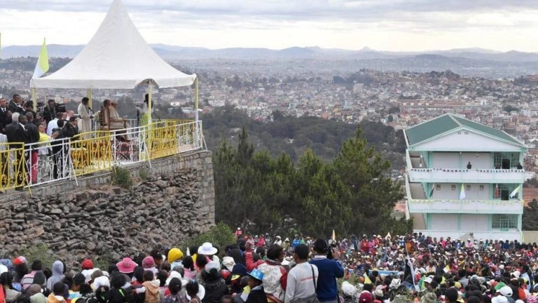 Después de haber visitado la "Ciudad de la Amistad" de Akamasoa ? que fundó en 1989 el misionero argentino Pedro Opeka de la Congregación de la Misión, cerca del vertedero de la capital de Madagascar, quien logró ofrecer una vida algo más digna a quienes trabajan en la cercana cantera de granito ? el Pontífice se encontró precisamente con estos trabajadores para dejarles una oración llena de esperanza.