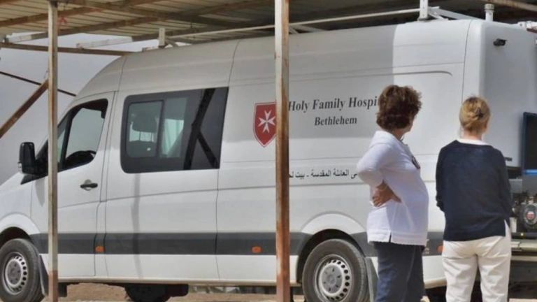 En Oriente Medio, la Orden trabaja en el apoyo de cristianos y no cristianos. Además, no sólo constituye una forma de mejorar la vida de una población que desde hace años se enfrenta a conflictos armados; es también, un mensaje de convivencia. Este servicio a todos indiferentemente de la religión, tiene lugar con diversas iniciativas. En Belén, en un centro sanitario trabajan codo con codo el personal cristiano y musulmán. También, en el Líbano, desbordado por la presencia de refugiados de Siria e Irak, la Orden gestiona diez ambulatorios y cuatro clínicas móviles.