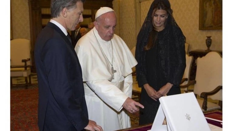 El Ing. Macri donó al Papa Francisco un poncho, una colección de música de diferentes regiones argentinas y una de Cruz de Matará, símbolo de la evangelización en América.