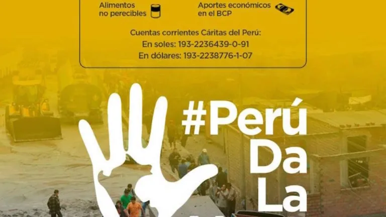 Por ello, Cáritas del Perú, con el apoyo de la Conferencia Episcopal Peruana y la colaboración de RPP Noticias y la municipalidad de San Isidro, están convocando a la población en general a apoyar con productos no perecibles, equipos como motobombas, herramientas, generadores y materiales de construcción, además de aportes económicos a través del Banco de Crédito del Perú.