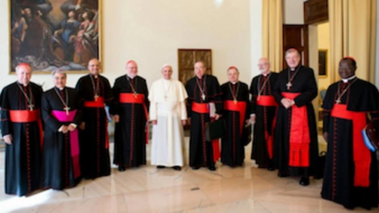 El Consejo de Cardenales está formado por nueve prelados: El cardenal Giuseppe Bertello, presidente de la Comisión Pontificia para el Estado de la Ciudad del Vaticano; el cardenal Francisco Javier Errazuriz Ossa, arzobispo emérito de Santiago, Chile; El cardenal Oswald Gracias, arzobispo de Bombay; El cardenal Reinhard Marx, arzobispo de Munich; El cardenal Laurent Monsengwo Pasinya, arzobispo de Kinshasa, Congo; El cardenal Sean Patrick O?Malley, arzobispo de Boston; El cardenal George Pell, prefecto de la Secretaría de Economía (no presente, en Australia); El Cardenal Oscar Andrés Rodríguez Maradiaga, arzobispo de Tegucigalpa, Honduras; y el cardenal Pietro Parolin, Secretario de Estado del Vaticano.