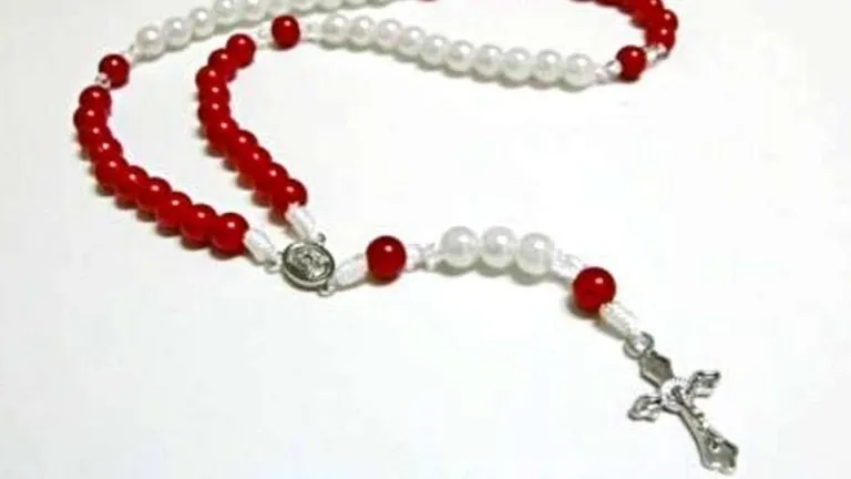 Rosario de colores blanco y rojo, que usan para rezar por la unidad nacional en Indonesia. Foto: Fides.