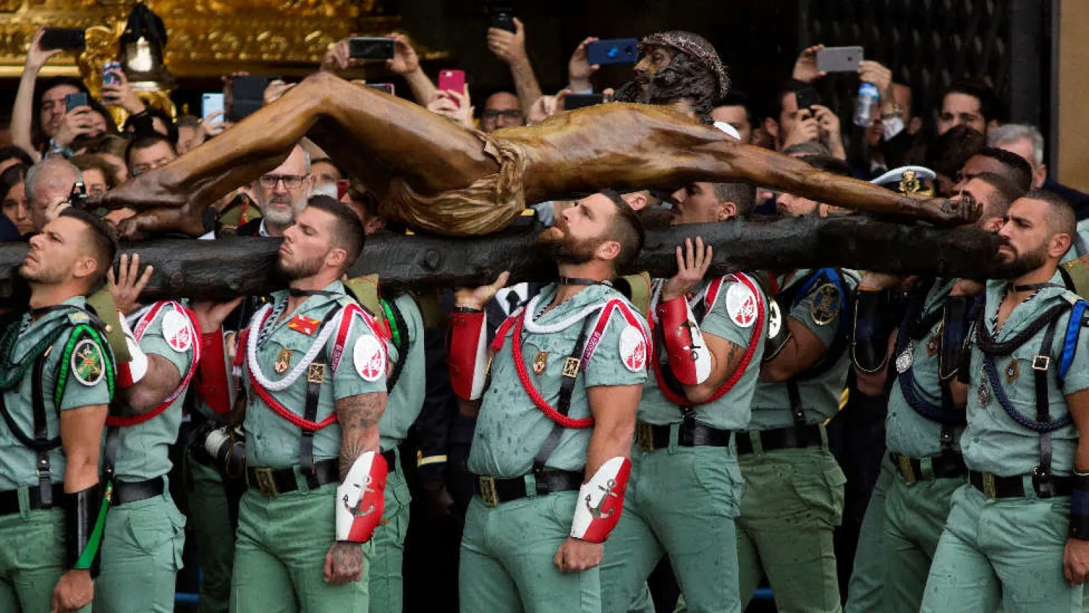 La lluvia acorta el traslado del Cristo de Mena por los legionarios