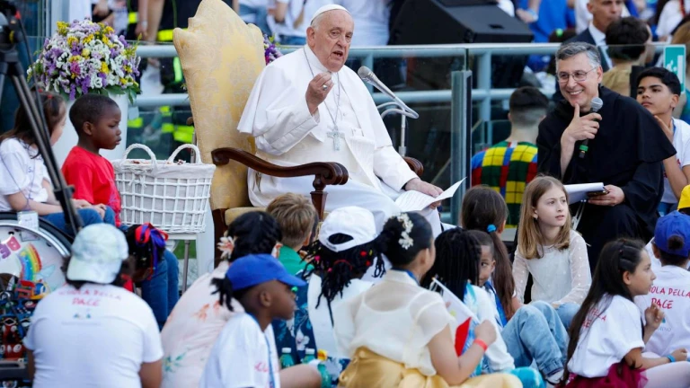 El papa celebra misa para miles de niños y pide que recen para que no haya guerras