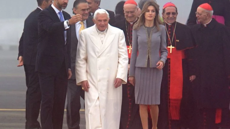 De hecho, fueron los entonces príncipes Felipe y Letizia quienes recibieron al Papa Benedicto XVI a los pies de la escalerilla cuando viajó del avión que aterrizó en el viaje a Santiago de Compostela. Tras la ceremonia de bienvenida, mantuvo con ellos un encuentro privado.