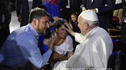 El Papa escucha durante la inauguración del X Encuentro Mundial de las Familias la historia de dolor y amor de su familia