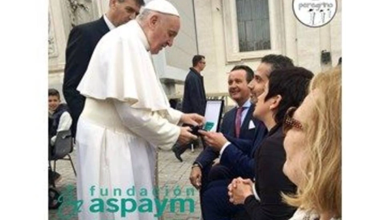 Algunos miembros de la Asociación de Parapléjicos y Grandes Minusválidos Físicos (ASPAYM) de Castilla y León, España, han viajado hasta la Plaza de San Pedro en el Vaticano para asistir a la Audiencia General del 26 de abril de 2017 y celebrar, junto al Papa Francisco, el 25 aniversario de la asociación.