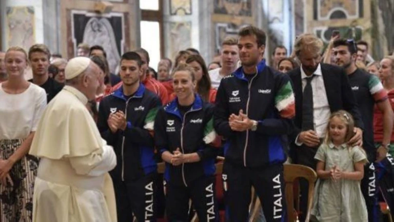 ueridos dirigentes y atletas, sean un buen ejemplo para vuestros coetáneos, un ejemplo que puede ayudarles a construir su porvenir. El lenguaje del deporte es universal y alcanza fácilmente a las nuevas generaciones. Por ello, los animó a transmitir mensajes positivos a través de vuestra actividad, contribuyendo así también a mejorar la sociedad en la que vivimos", lo dijo el papa Francisco a los miembros de la Federación Italiana de Natación y a los atletas participantes en el Trofeo "Siete colinas", a quienes recibió en audiencia este jueves, 28 de junio, en la Sala Clementina del Vaticano.