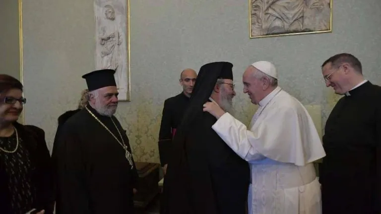 Asimismo, el Santo Padre recordó que, nos toca a nosotros seguir caminando juntos, hacer juntos, redescubrirnos como hermanos. "Paso a paso, en las cosas que hacemos, podemos ver, con la ayuda de Dios, su presencia de amor que nos une en una comunión cada vez más fuerte. Quisiera pedir con vosotros ? invocó el Pontífice ? la gracia de caminar así: no cada uno por su camino, siguiendo sus propios objetivos, como si el otro fuera sólo uno que la historia ha puesto a mi lado, sino como hermanos que la Providencia ha reunido y que avanzan juntos hacia el único Señor, llevando los unos los pesos de los otros, regocijándose los unos por los pasos de los otros. Agradezco a la Diaconía Apostólica por el recorrido realizado en este camino y aseguro el apoyo de la Iglesia Católica para la continuación de este recorrido".
