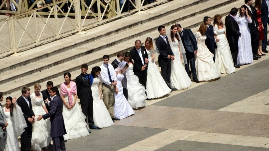 Cada miércoles, miles de personas se reúnen en el Vaticano para participar en la Audiencia general del Papa. Entre ellos, están las parejas de recién casados que acuden a recibir una bendición especial del Pontífice para iniciar su vida matrimonial. Es lo que se conoce como la bendición a los sposi novelli.