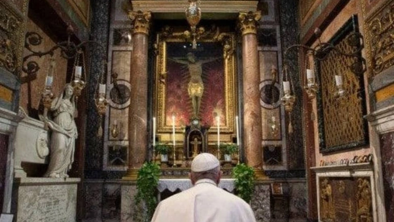 Una intensa oración frente a María Salus Populi Romani, y frente al crucifijo de madera que protegió a Roma de la "Gran Peste" del siglo XVI. Así, el Papa Francisco, en este tercer domingo de Cuaresma, saliendo del Vaticano, quiso enfatizar su cercanía con quienes sufren al ir a implorar la protección especial de la Virgen que es venerada en el icono conservado en la basílica de Santa María Maggiore, en la primera etapa de sus dos visitas romanas.