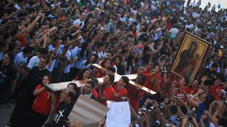 Tengo grabado en mi memoria el extraordinario encuentro que vivimos en Río de Janeiro, en la XXVIII Jornada Mundial de la Juventud. ¡Fue una gran fiesta de la fe y de la fraternidad! La buena gente brasileña nos acogió con los brazos abiertos, como la imagen de Cristo Redentor que desde lo alto del Corcovado domina el magnífico panorama de la playa de Copacabana. A orillas del mar, Jesús renovó su llamada a cada uno de nosotros para que nos convirtamos en sus discípulos misioneros, lo descubramos como el tesoro más precioso de nuestra vida y compartamos esta riqueza con los demás, los que están cerca y los que están lejos, hasta las extremas periferias geográficas y existenciales de nuestro tiempo.