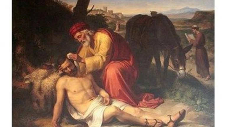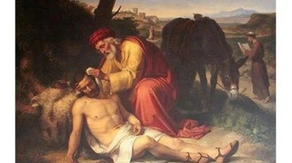 Dice la parábola: "un samaritano que viajaba por allí, al pasar junto a él, lo vio y se compadeció. Entonces se acercó y vendó sus heridas, cubriéndolas con aceite y vino; después lo puso sobre su propia montura, lo condujo a un albergue y se encargó de cuidarlo" (Lucas 10, 33-34).