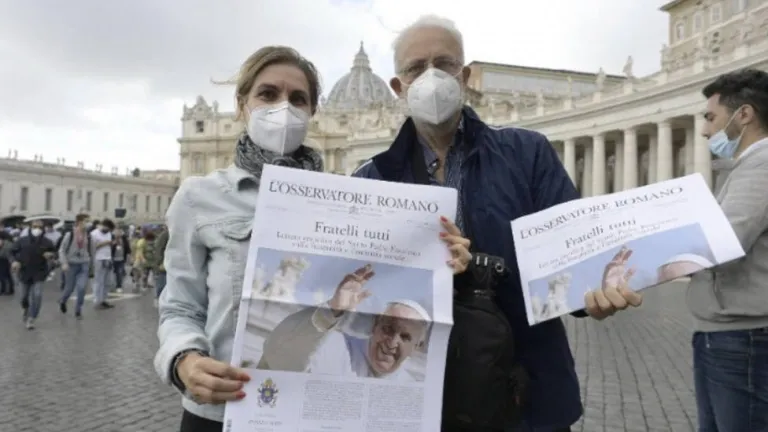 Al finalizar el rezo del Ángelus, el Papa Francisco ha recordado su presencia ayer en Asís para firmar su tercera encíclica, Fratelli tutti, sobre la fraternidad y la amistad social. "La ofrecí a Dios sobre la tumba de san Francisco, en el cual me he inspirado al igual que en la anterior encíclica, ?Laudato si’", ha dicho Francisco. Y es que, ha añadido, "la fraternidad humana y el cuidado de la Casa común forman el único camino hacia el desarrollo integral y la paz".