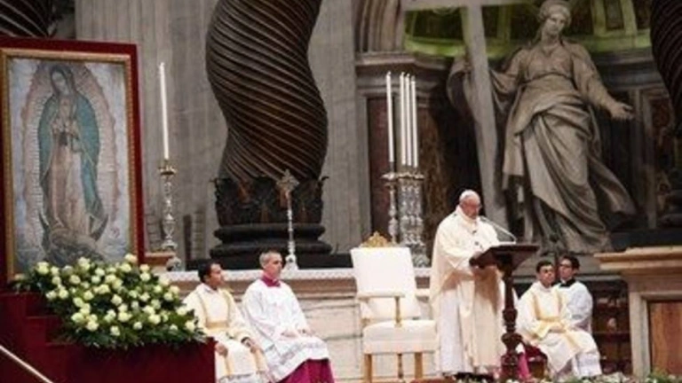 o en su homilía con ocasión de la Santa Misa por América Latina, en la fiesta litúrgica de la Bienaventurada Virgen María de Guadalupe, celebrado la tarde de este martes 12 de diciembre, en la Basílica de San Pedro, en el Vaticano.