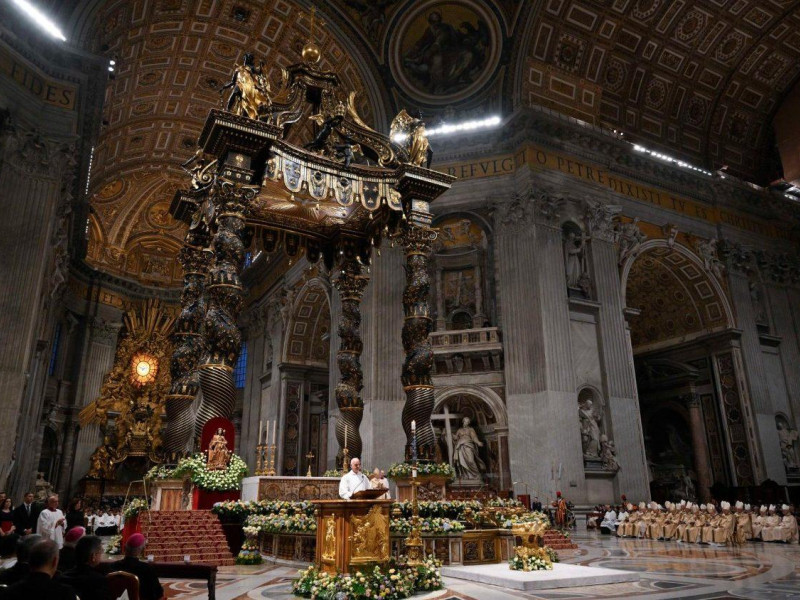 Ha sido durante la Vigilia Pascual y, aunque ausente físicamente por motivos de salud, Francisco había preparado la homilía, leída por el cardenal Giovanni Battista Re, decano del Colegio Cardenalicio, en una Basílica de San Pedro colmada por más de 6.000 fieles: “¡Hagamos espacio a la luz del Resucitado! Y nos convertiremos en constructores de esperanza para el mundo”.