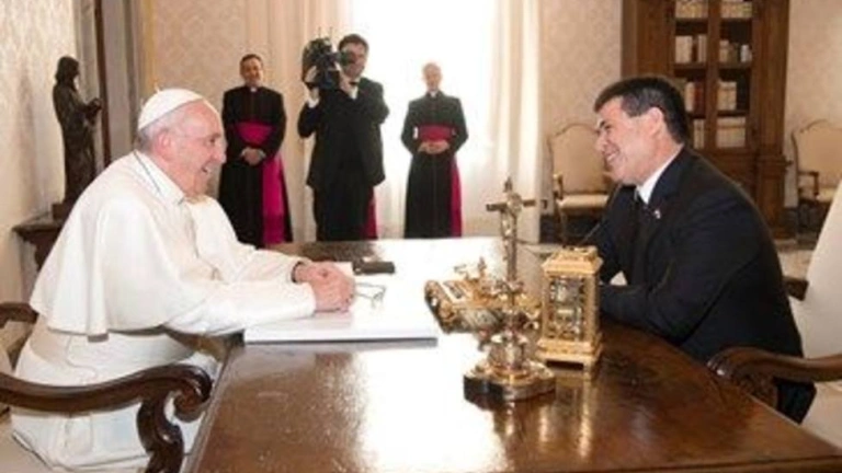 "Los coloquios, desarrollados en un ambiente de cordialidad ? refiere una nota de la Oficina de Prensa de la Santa Sede ? han puesto de manifiesto las buenas relaciones entre la Santa Sede y Paraguay. Se han analizado temas de interés común, tales como el desarrollo integral de la persona humana, la lucha contra la pobreza y la paz social. En esta perspectiva, se ha mencionado también la colaboración con la Iglesia Católica y la contribución que ofrece en el ámbito social, educativo y de asistencia a los más necesitados. La conversación ha proseguido con un intercambio de puntos de vista sobre la situación política y social regional, con especial referencia al desarrollo de las instituciones democráticas".