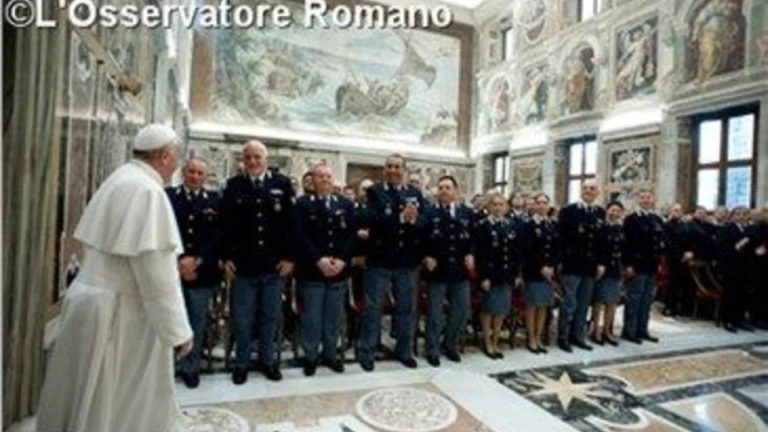 En su discurso, el Pontífice recordó las palabras de consuelo del apóstol Pablo: "¿Quién nos separará del amor de Cristo? ¿Tal vez la tribulación, la angustia, la persecución, el hambre, la desnudez, el peligro, la espada? … Pero en todas estas cosas somos más que vencedores gracias a aquel que nos amó. "A la luz de esta firme esperanza -ha añadido- vuestro trabajo adquiere un significado diferente, que implica valores humanos y cristianos. Tenéis la tarea de vigilar y supervisar lugares que tienen gran importancia para la fe y la vida de millones de peregrinos. Muchas personas que vienen a visitar el corazón de la Roma cristiana a menudo recurren a vosotros".