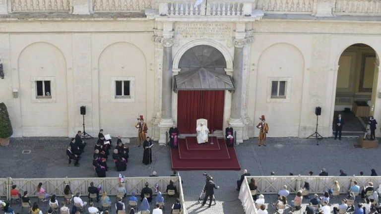 "Exhorto a la comunidad internacional a trabajar para que se respeten los edificios que deberían proteger a los jóvenes estudiantes. Que no falte el esfuerzo para garantizarles ambientes seguros para la formación, sobre todo en situaciones de emergencia humanitaria", es el llamamiento que hizo el Papa Francisco en la Audiencia General de este miércoles, 9 de septiembre de 2020, desde el Patio de San Dámaso del Vaticano.