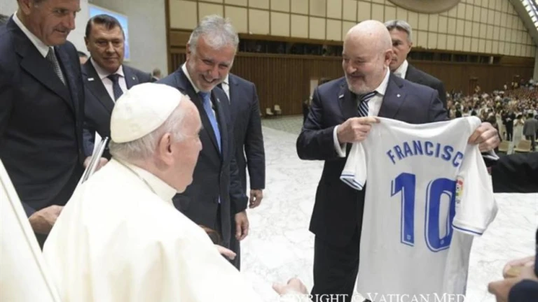 El equipo blanquiazul, que milita en la Liga Smartbank (Segunda División), ha entregado al Santo Padre una camiseta firmada por toda la plantilla y serigrafiada con su nombre y el número 10. Asimismo, obsequiaron al obispo de Roma con el libro del Centenario del club en una funda especial, un banderín y una bufanda del CD Tenerife. Este último regalo propició un comentario bromista de Francisco, quien preguntó “si hacía tanto frío en Canarias”.