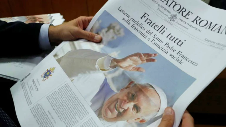 La tercera encíclica de Papa Francisco, “Fratelli Tutti”, salió a la luz ayer después del Ángelus en la Plaza San Pedro. “Tengo la alegría de entregarles la nueva Encíclica, en una edición especial del Osservatore Romano. Y con esta edición, la edición impresa diaria del Osservatore Romano se reanuda” dijo el Santo Padre desde el balcón del Palacio Apostólico.