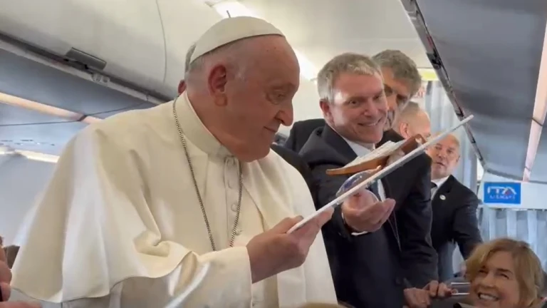 Estos son los regalos que le ha entregado Eva Fernández al Papa en el avión destino Marsella