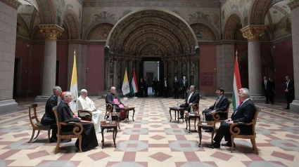 De manera privada, en la sala románica del Museo de Bellas Artes, Francisco se reunió esta mañana con el Presidente, el Primer Ministro y el Viceprimer Ministro del país
