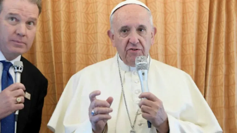 El Papa Francisco durante el vuelo con destino a Georgia. REUTERS