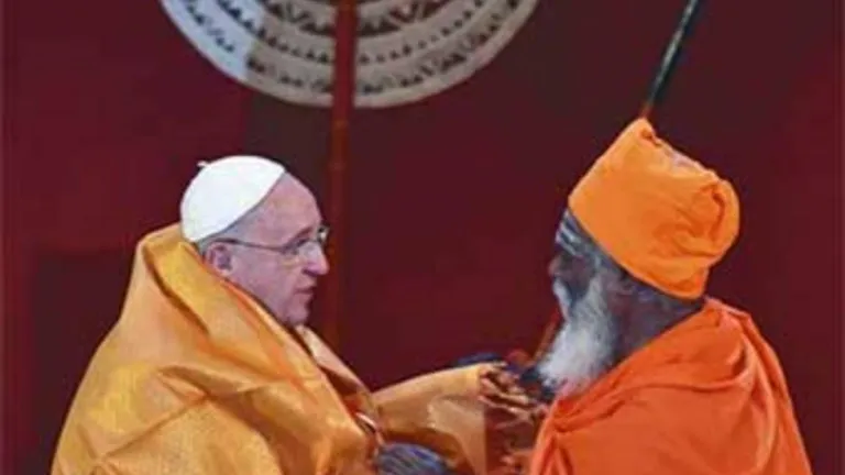 Las cinco páginas que dedica hoy ecclesia a la crónica de Vaticano (34 a 38) están protagonizadas por el viaje apostólico del Papa Francisco a Sri Lanka y a Filipinas. Creemos que la visita papal ha constituido un generoso servicio a la reconciliación, al respeto y diálogo entre las religiones, a la causa de los pobres y a la misión evangelizadora. De entre las imágenes que podríamos haber elegido como portada, va esta en la que el Santo Padre recibe una túnica color azafrán de parte de un líder hindú de Sri Lanka. En el encuentro, desarrollado el martes 13 de enero, participaron representantes de las diferentes religiones que conviven en el país: budistas, hindúes, musulmanes y comunidades cristianas.