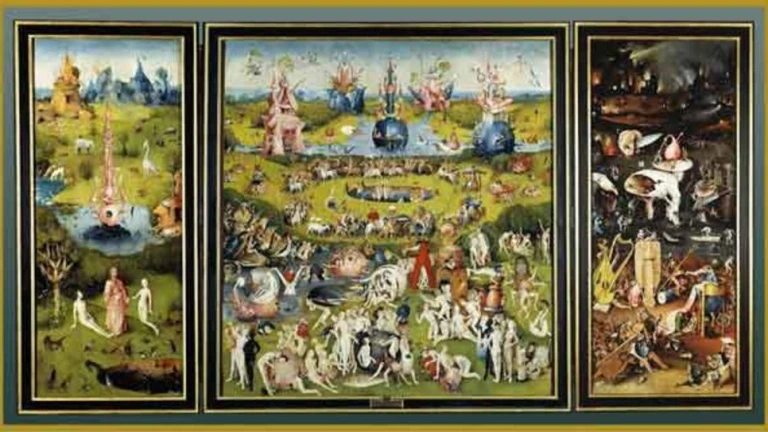 Sin embargo estas "puertas del pecado" se encuentran reflejadas en numerosas obras del arte occidental. Baste recordar el cuadro al óleo sobre tabla, pintado y firmado por El Bosco entre 1475 y 1480, que se encuentra en el Museo del Prado. Es interesante dirigir una mirada a esta obra de arte.