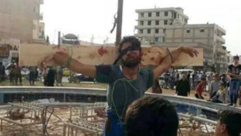 "Si quieren ejemplos, en Maaloula crucificaron a dos jóvenes porque no quisieron decir la shahada (fe musulmana). Les dijeron: ?Entonces quieren morir como su amo en el que creen. Tienen una opción: recitan la shahada o serán crucificados?. Y les crucificaron. Hubo uno que fue crucificado delante de su padre. Incluso mataron a su padre. Esto ocurrió por ejemplo en Abra, en la zona industrial en las afueras de Damasco".