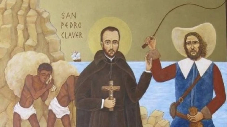 Si hay algún personaje gran defensor de los negros que sacrificó toda su vida por ellos ese fue el jesuita catalán San Pedro Claver. Nacido en Verdú en el valle del Urgel el 26 de junio. A los 18 años se inició en la vida eclesiástica. Ingresando poco después en la Compañía de Jesús. En la isla de Mallorca conoció a una jesuita célebre por su intensa espiritualidad ascético-mística San Alfonso Rodríguez, que le influyó definitivamente para dar un cambio radical en su vida. El 15 de abril de 1610, a los 30 años se embarcó en Sevilla en el galeón San Pedro, con el fin de consagrar su vida para cumplir su gran pasión ser esclavo de los negros. Conoció in situ la terrible realidad de la esclavitud de los negros por el testimonio del P. Sandoval, el otro gran defensor de los esclavos, cuando conoció la realidad sintió la tentación de huir ante tanta miseria y degradación, pero pudo mucho más su gran promesa. Se dedicó con gran esfuerzo y constancia a ejercer su labor apostólica con los negros en tres ciudades de Colombia: Santa Fe de Bogotá, Tunja, sobre todo en Cartagena de Indias. En una carta del 31 de Mayo 1617, conservada, aclara la forma de llegar hasta los barcos que traficaban con negros: "Ayer saltaron a tierra un gran navío de negros de Rio Guinea. Fuimos allá cargados de naranjas, limones y tabaco. Entramos en sus barracones, remeros de una y otra parte. Fuimos rompiendo hasta llegar a los enfermos de que había una gran manada, echados en el suelo muy húmedo y ennegrecido. Echamos manteos fuera, terraplenamos el lugar, llevamos en brazos los enfermos".