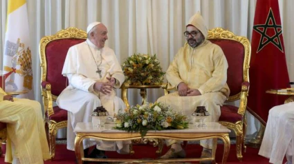 El Papa Francisco llega a Rabat y es recibido por el rey Mohamed VI