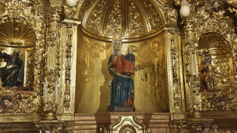 Esos versos anónimos del siglo XVI, plasmados en un pergamino, están situados al comienzo de la escalera por la que se baja a la cripta donde se encuentra la imagen de María, justo debajo de los ábsides de la basílica de los Santos Hermanos Mártires, Vicente, Sabina y Cristeta. Uno de los templos románicos más destacados de este estilo arquitectónico de toda España.