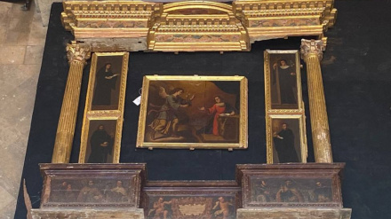 El comunicador llevaba consigo la Virgen de su hermandad, 'La Candelaria', mientras que la Virgen 'Desatanudos' presidía la biblioteca donde se realizó la entrevista