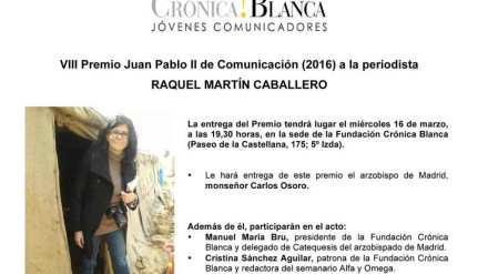 VIII Premio Juan Pablo II de Comunicacio?n (2016) a la periodista Raquel Martín Caballero Redacción Digital