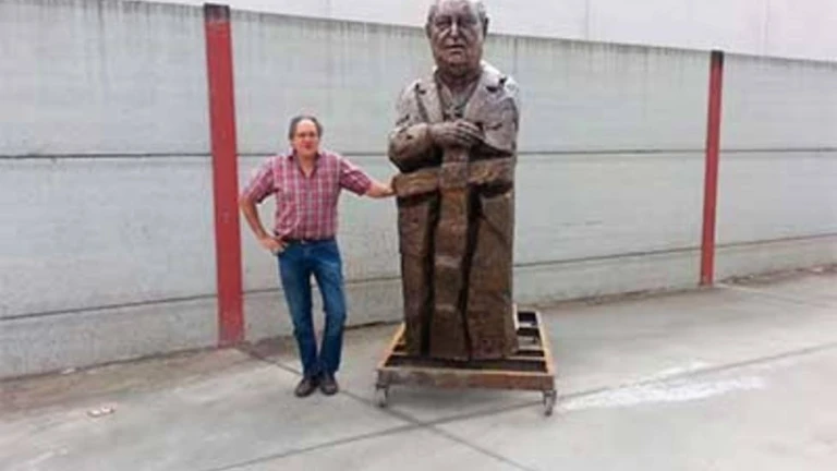 En la foto adjunta aparecen el escultor junto a su obra en bronce de monseñor Arnáiz