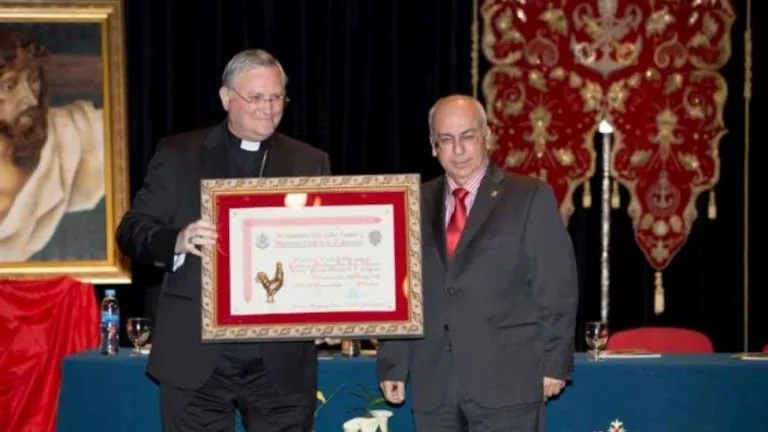 La Hermandad de San Pedro Apóstol y Santísimo Cristo de la Esperanza de Alcantarilla celebró el pasado sábado la XXII edición del Gallo de Oro, la máxima distinción de esta hermandad, que este año recayó sobre Mons. José Manuel Lorca Planes por "la predisposición constante" a atender las propuestas realizadas por dicha hermandad. El pregonero del acto fue el Vicario General de la Diócesis, D. Juan Tudela García.