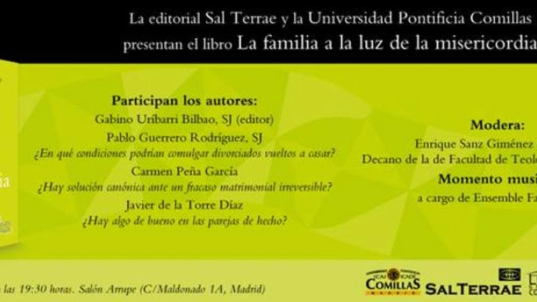 Profesores de la Universidad Pontificia Comillas, en su mayoría de la Facultad de Teología, y uno de Granada, han reunido en el libro La familia a la luz de la misericordia, de Sal Terrae, sus aportaciones y reflexiones sobre la doctrina y pastoral familiar en línea con las propuestas del Sínodo de Obispos de octubre de 2014. Abordan algunos de los temas que, desde su punto de vista, han quedado necesitados de una mayor reflexión, por ejemplo: la conjunción de fe y sacramentalidad para el matrimonio; la valoración teológica de las uniones no sacramentales; las posibles condiciones de acceso a la comunión de los divorciados y vueltos a casar; la agilización de los procesos de nulidad. El decano de la Facultad de Teología, Enrique Sanz SJ, y cuatro de los autores presentarán el libro el próximo 28 de mayo, a las 19.30h., en el Salón Arrupe de la calle Maldonado.