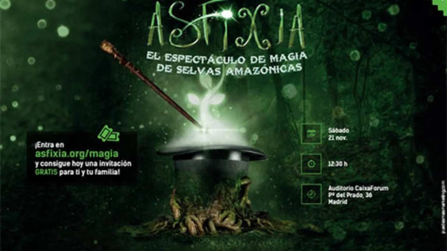 Selvas Amazónicas, institución misionera que lleva más de 100 años defendiendo la dignidad de los pueblos indígenas en la selva amazónica peruana, organiza el espectáculo de magia "Asfixia" que se celebrará el próximo sábado 21 de noviembre en el Auditorio del CaixaForum de Madrid, y que cuenta con la colaboración de COPE, Caixaforum, Escuela de Magia Rafael Píccola y FERE.