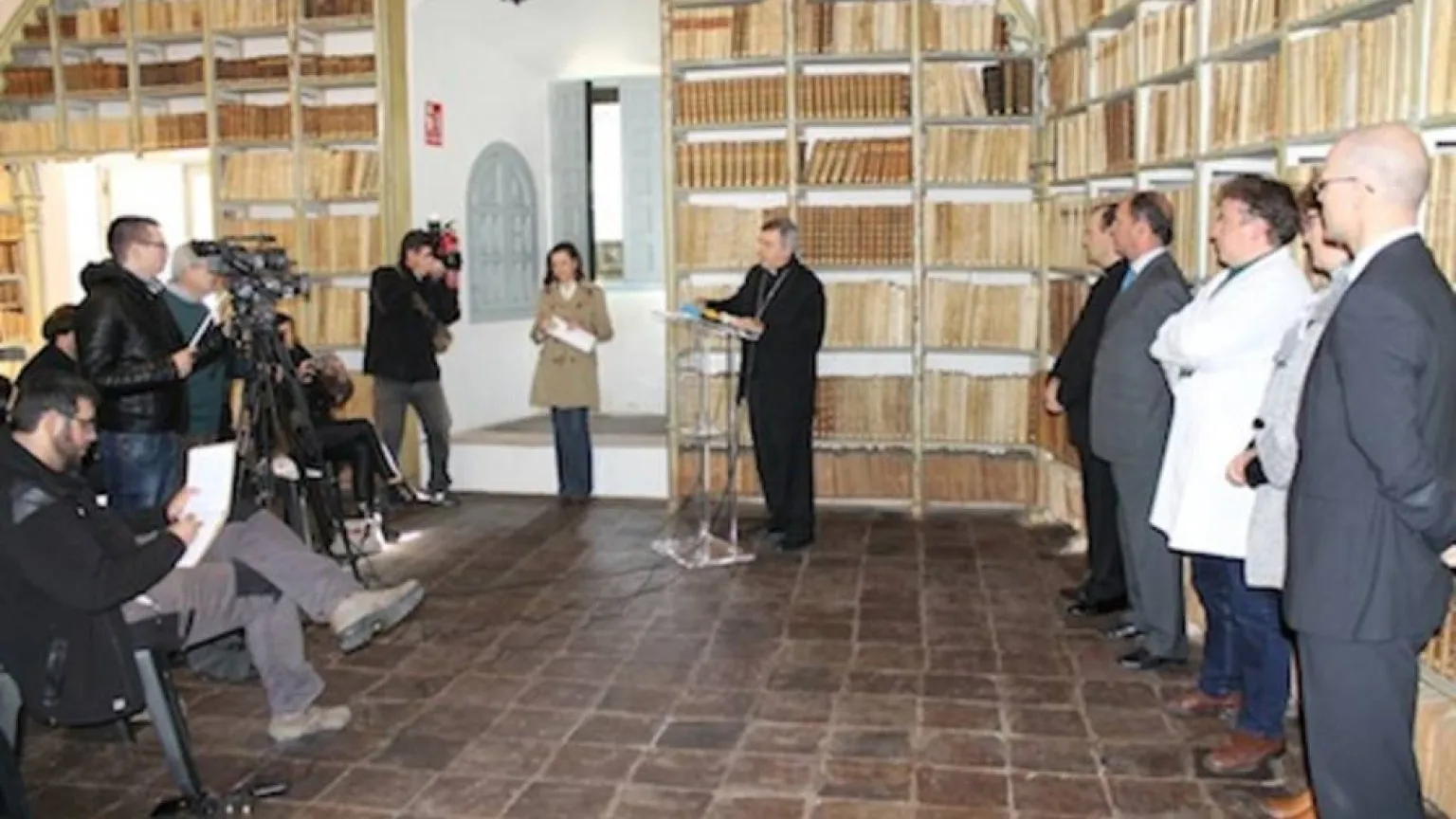"La catalogación de esta biblioteca ha sido siempre un empeño de esta casa porque sabíamos el rico patrimonio que alberga. Este proyecto se lo hemos presentado a otras instituciones y ha sido la Fundación del Banco Sabadell la que lo ha apoyado, lo cual agradecemos" explicó don Antonio Luis Galán, Vicario de Patrimonio de la Diócesis de Plasencia.