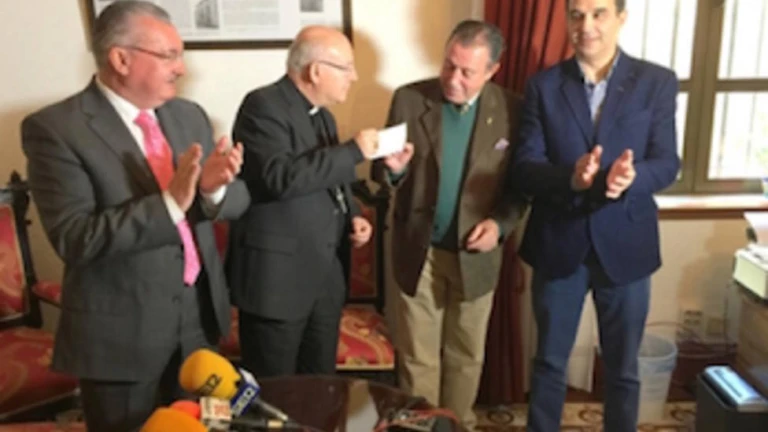 El obispo de Jaén entrega los beneficios del libro "La muerte de un torero" al asilo Nuestra Señora de las Mercedes de Linares