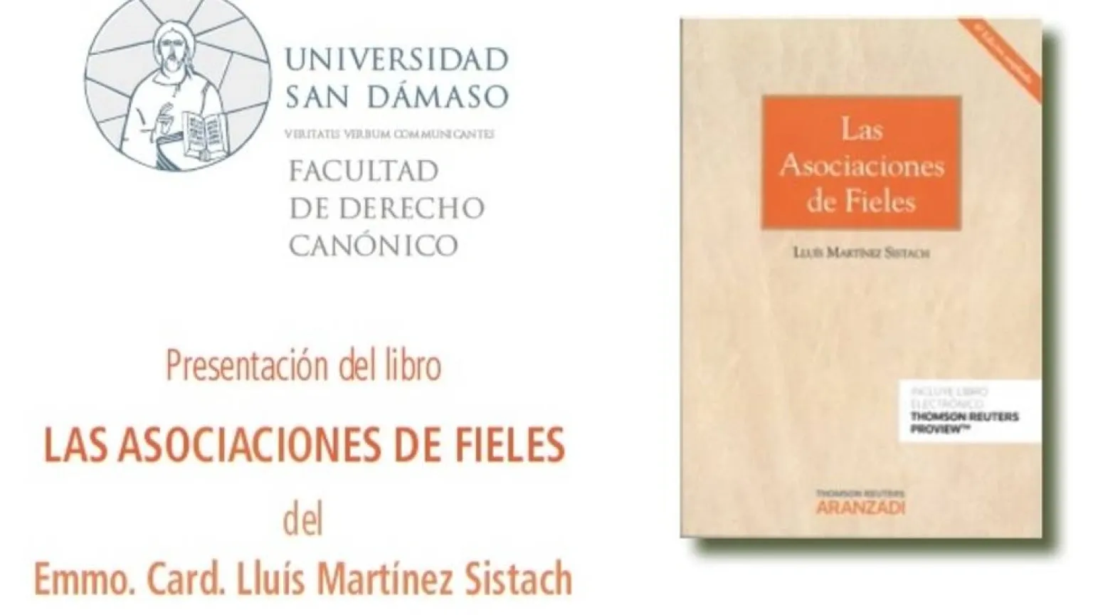 La Facultad de Derecho Canónico de la Universidad Eclesiástica San Dámaso (UESD) organiza la presentación del libro "Las Asociaciones de Fieles", del Cardenal Lluís Martínez Sistach. Tendrá lugar el martes 22 de mayo de 2018 a partir de las 12h en el Aula Pablo Domínguez.