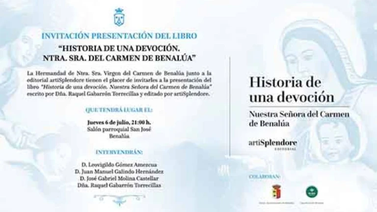 La presentación de este libro sobre la Virgen del Carmen de Benalúa, el próximo jueves, tendrá lugar en un acto abierto a todos los que quieran asistir. Sin duda, será un buen preludio de lo que los feligreses de Benalúa van a vivir el 16 de julio, cuando se celebre la fiesta de su patrona.