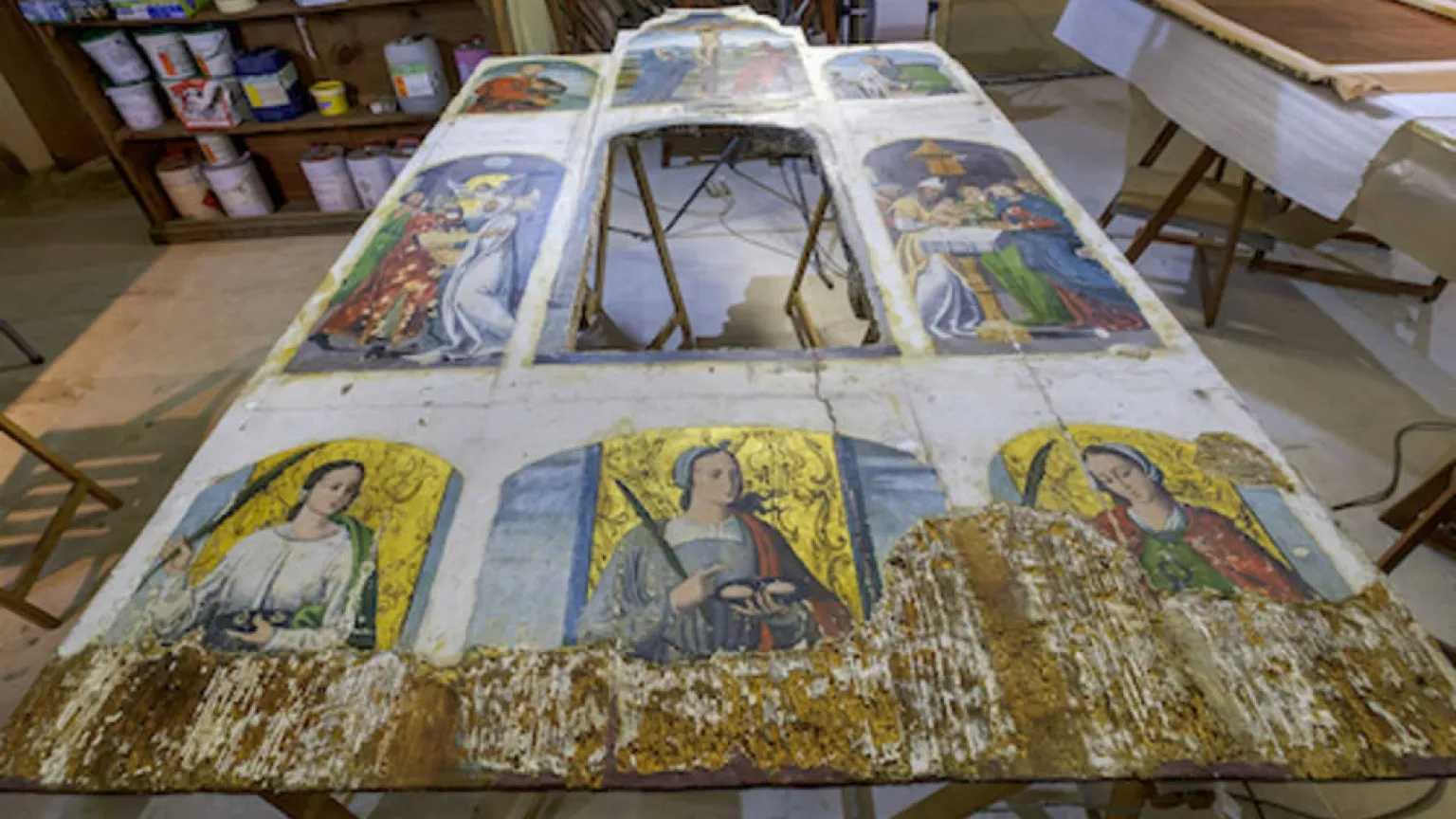 Desde junio el equipo de restauradores formado por Graziano Panzieri y Paloma Sánchez trabajan en la conocida como "carpintería" de la Catedral para recuperar el retablo de Frumales, el óleo de la Caridad Romana y el Pantocrátor del siglo XIV, todos expuestos anteriormente en la Sala de Santa Catalina.